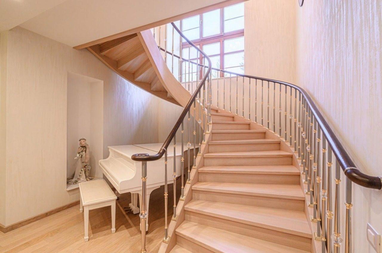 Обшивка трёхмаршевой П-образной лестницы с забежными ступенями. Конструкция сложная и требовательная к мастерству, но результат оправдывает вложения. Лестница становится центральным элементом дома и привлекает взгляды своим необычным, эффектным обликом.