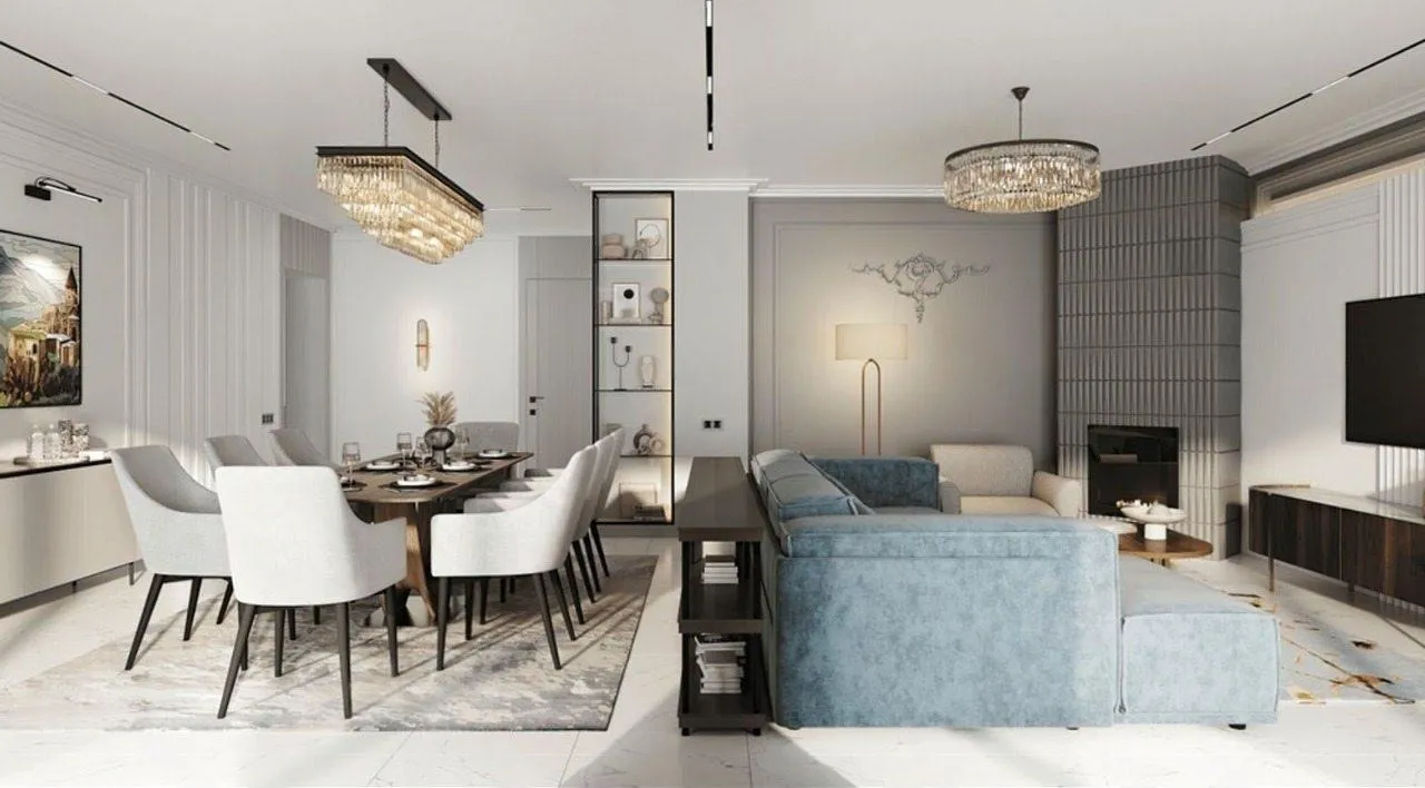 Чистовая отделка: Самый творческий и ответственный этап воплощения дизайна. Производим укладку премиальных напольных покрытий, покраску стен или поклейку обоев, монтаж декоративной лепнины, установку дверей, сантехники и осветительных приборов.